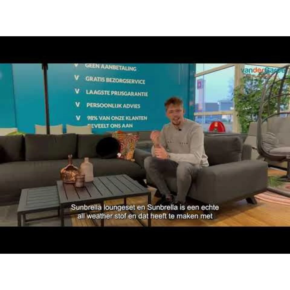Op zoek naar een heerlijke stoel om in te loungen? Dan is de Costa loungestoel met hocker precies wat je zoekt. De stoel kenmerkt zich door zijn looks en de lage zitting. Ook kenmerkend is de materiaal keuze voor deze stoel. Het frame is namelijk gemaakt van aluminium en de bekleding van de Costa loungestoel van Sunbrella. Deze speciale stof is weerstbestendig en kan dan ook het gehele jaar buiten blijven. Dit is uniek en maakt de stoel dan ook extra bijzonder. De stoel wordt geleverd inclusief bijhorende hocker. De decoratie artikelen en het sierkussen zijn niet inbegrepen. Het sierkussen kan eenvoudig mee besteld worden in de voordeelbundel.